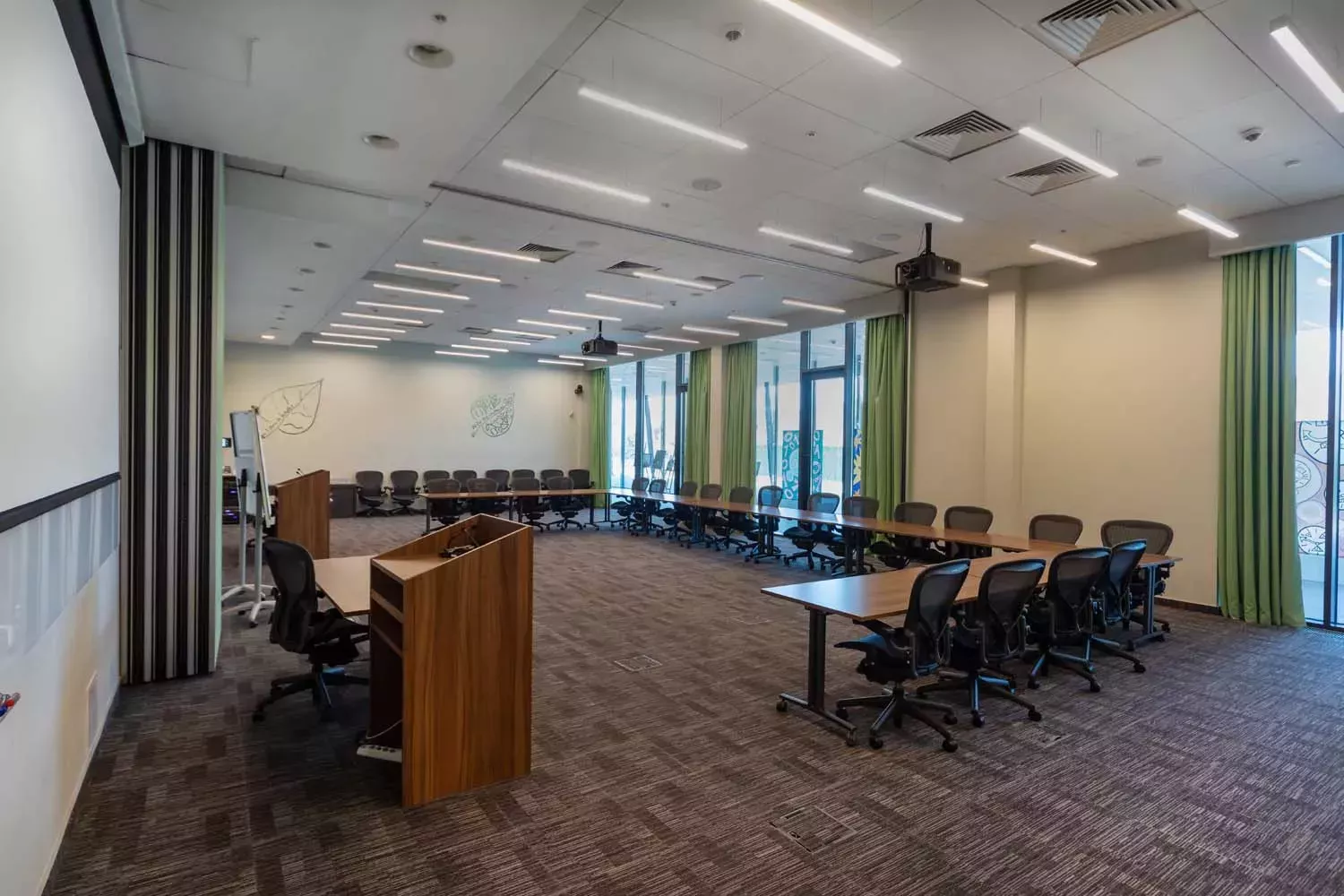 Две тренинговые аудитории со свободной расстановкой мебели в корпоративном центре
