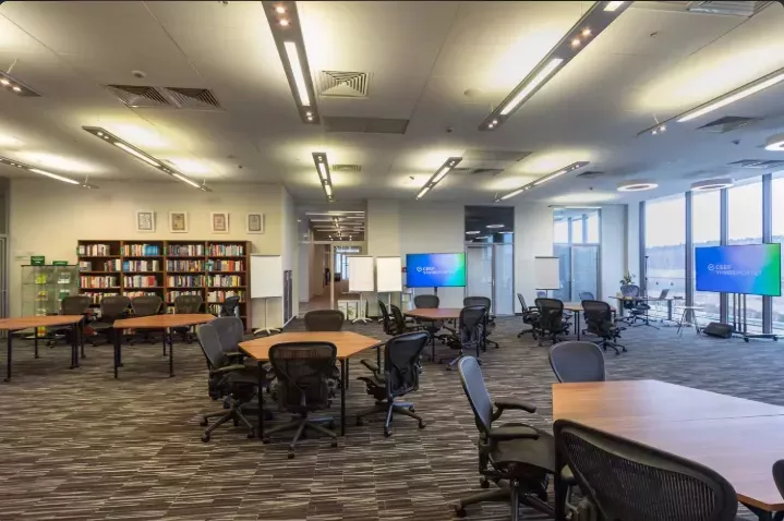 Две тренинговые аудитории со свободной расстановкой мебели в корпоративном центре