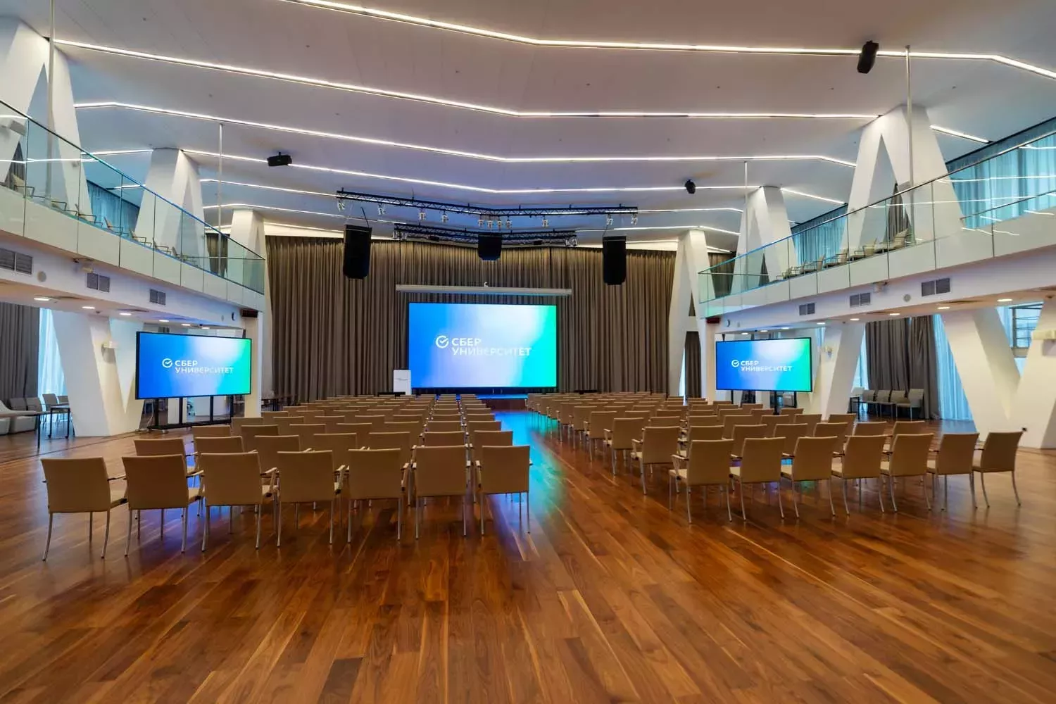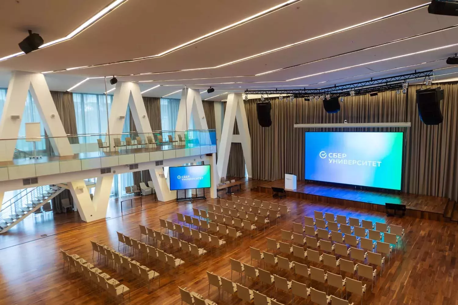 Основная аудитория корпоративного центра выполнена в инновационном дизайне, отлично подходит для проведения стратегических сессий, тренингов на развитие креативности и мозговых штурмов