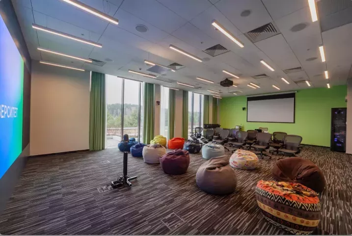 Основная аудитория корпоративного центра выполнена в инновационном дизайне, отлично подходит для проведения стратегических сессий, тренингов на развитие креативности и мозговых штурмов