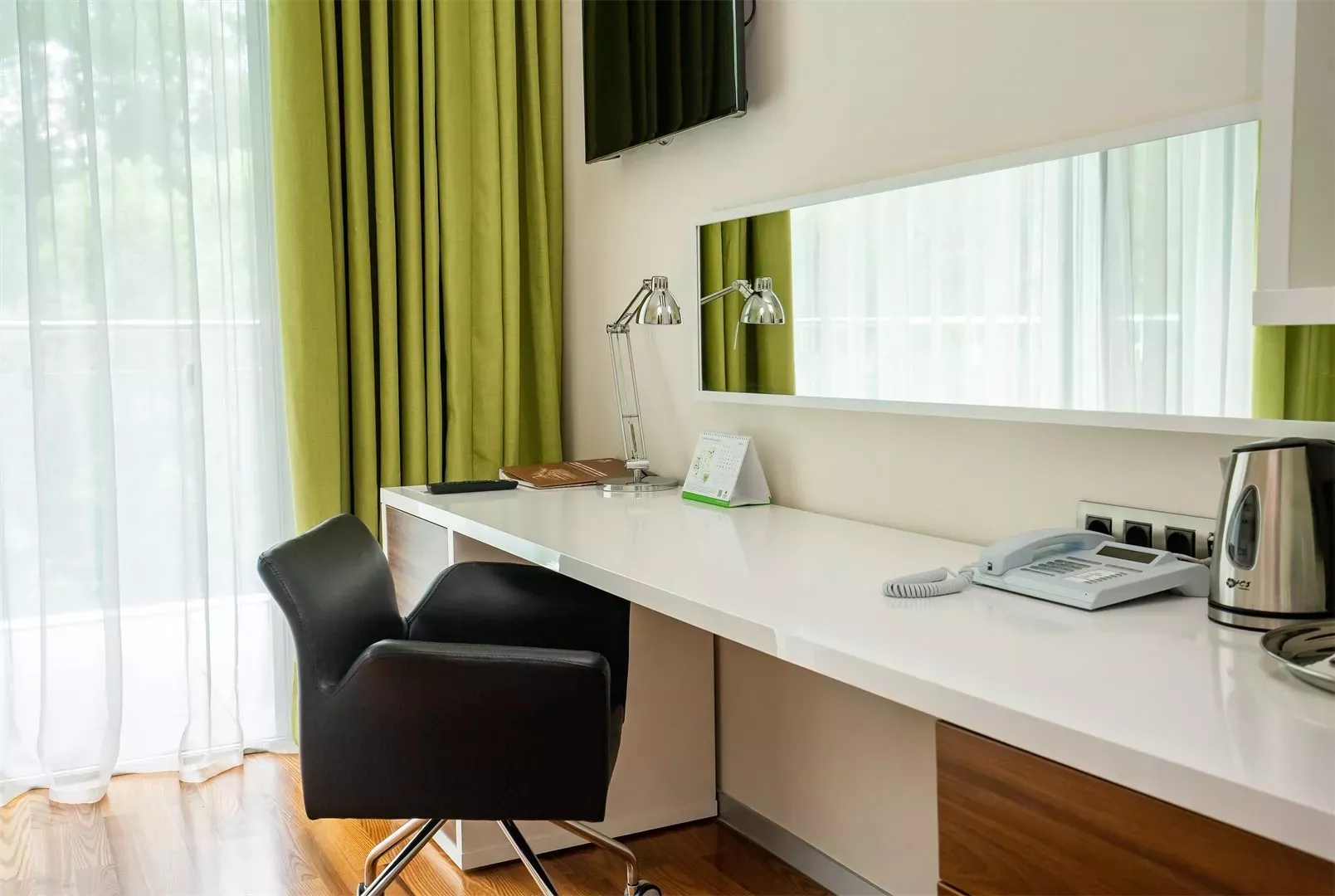 Двухместный номер двумя односпальными кроватями. Все номера имеют выход на балкон, с которого открывается чудесный вид на лес или ландшафтный парк. Номер оборудован всем необходимым – от сейфа до гладильной доски и чайной станции. Номера данной категории расположены в 4 корпусе гостиницы. Парковка для автомобилей расположена напротив 6 корпуса гостиницы.