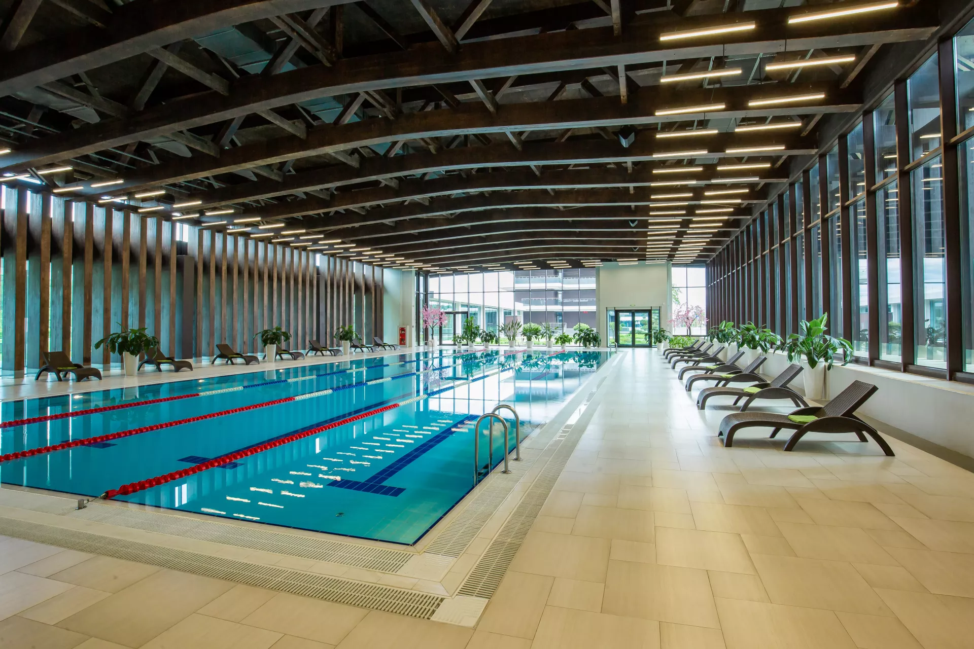 Чистота воды в бассейне поддерживается современной системой фильтрации, а комфортная температура создает условия для купания круглогодично.