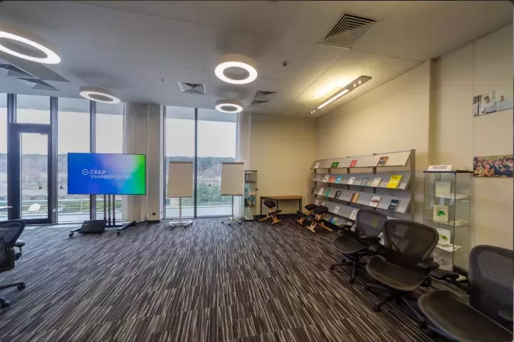 Панорамная аудитория в корпоративном парке. Подходит для проведения совещаний и переговоров