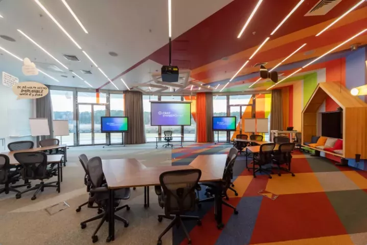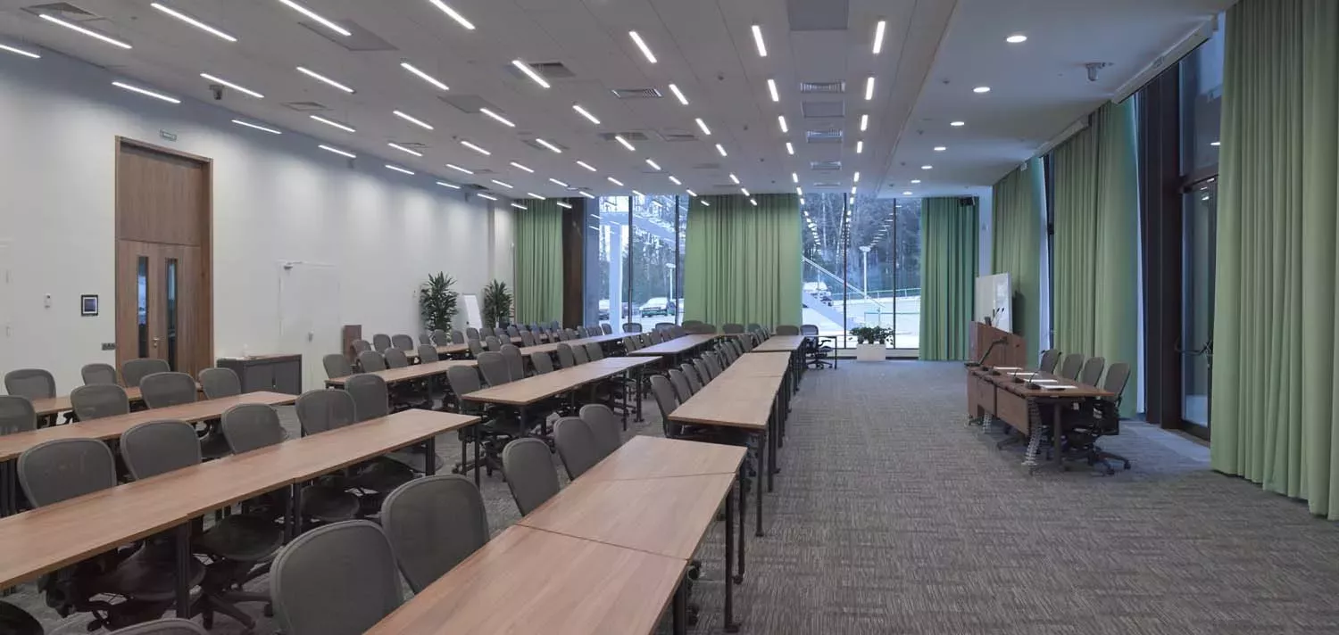 Основная аудитория корпоративного центра выполнена в инновационном дизайне, отлично подходит для проведения стратегических сессий, тренингов на развитие креативности и мозговых штурмов