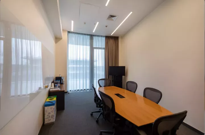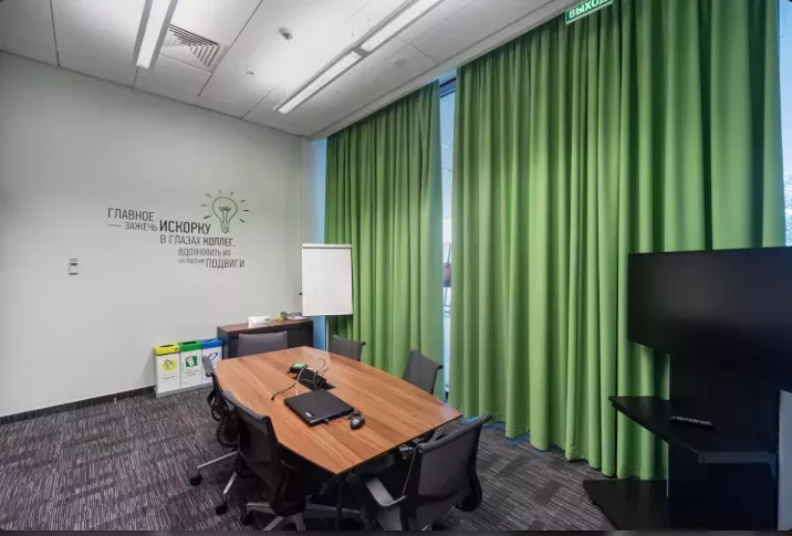 Зал предназначен для проведения переговоров, а также подойдет для бизнес-сессий и групповых работ