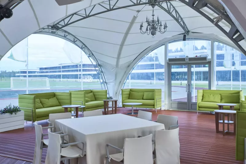 Панорамная аудитория в корпоративном парке. Подходит для проведения совещаний и переговоров