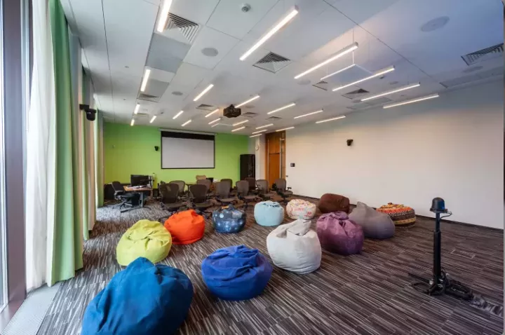 Основная аудитория корпоративного центра выполнена в инновационном дизайне, отлично подходит для проведения стратегических сессий, тренингов на развитие креативности и мозговых штурмов