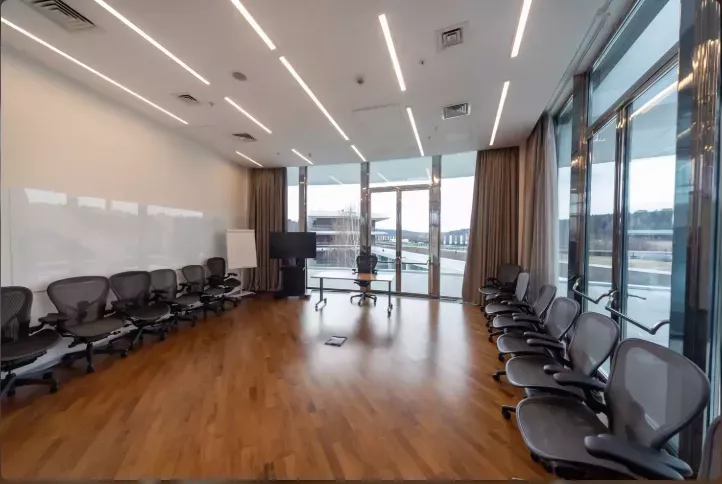 Панорамная аудитория в корпоративном парке. Подходит для проведения совещаний и переговоров